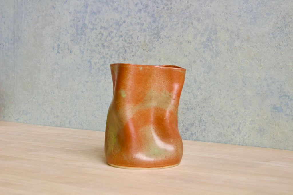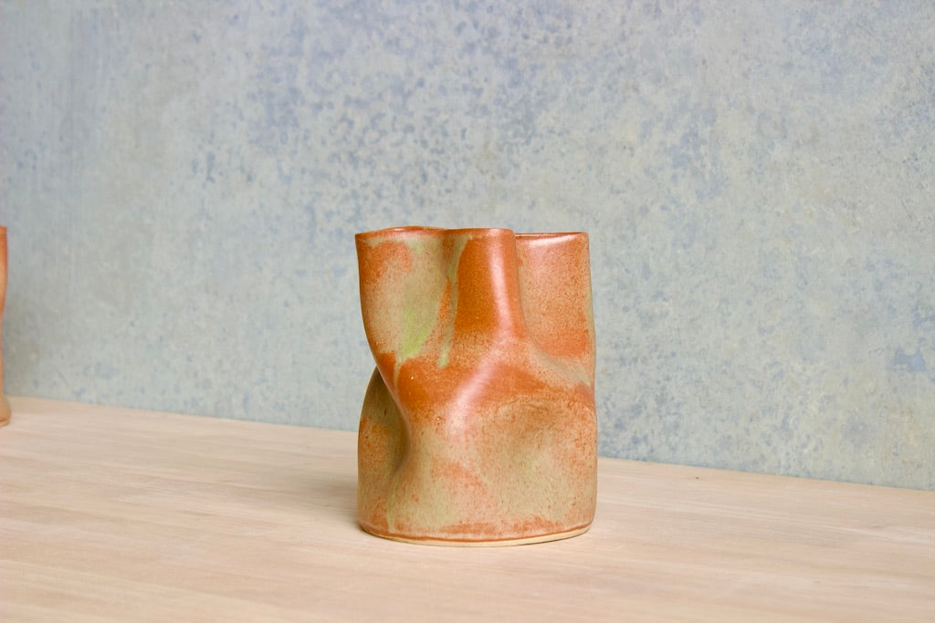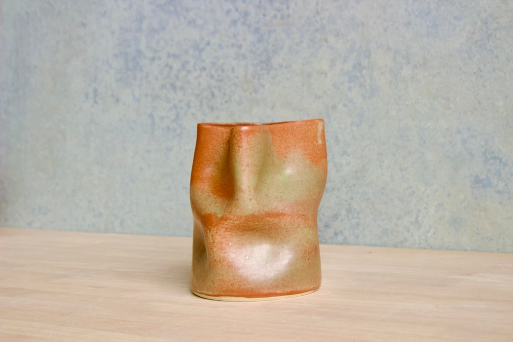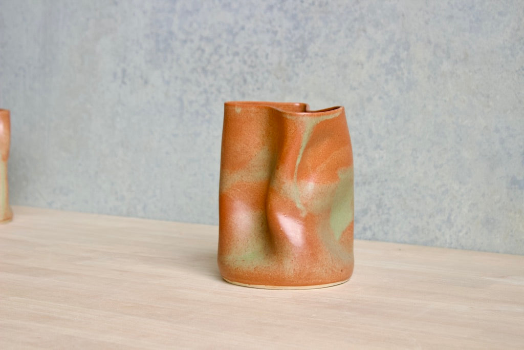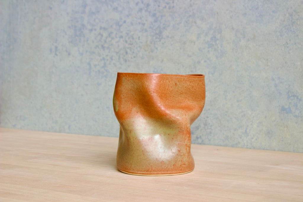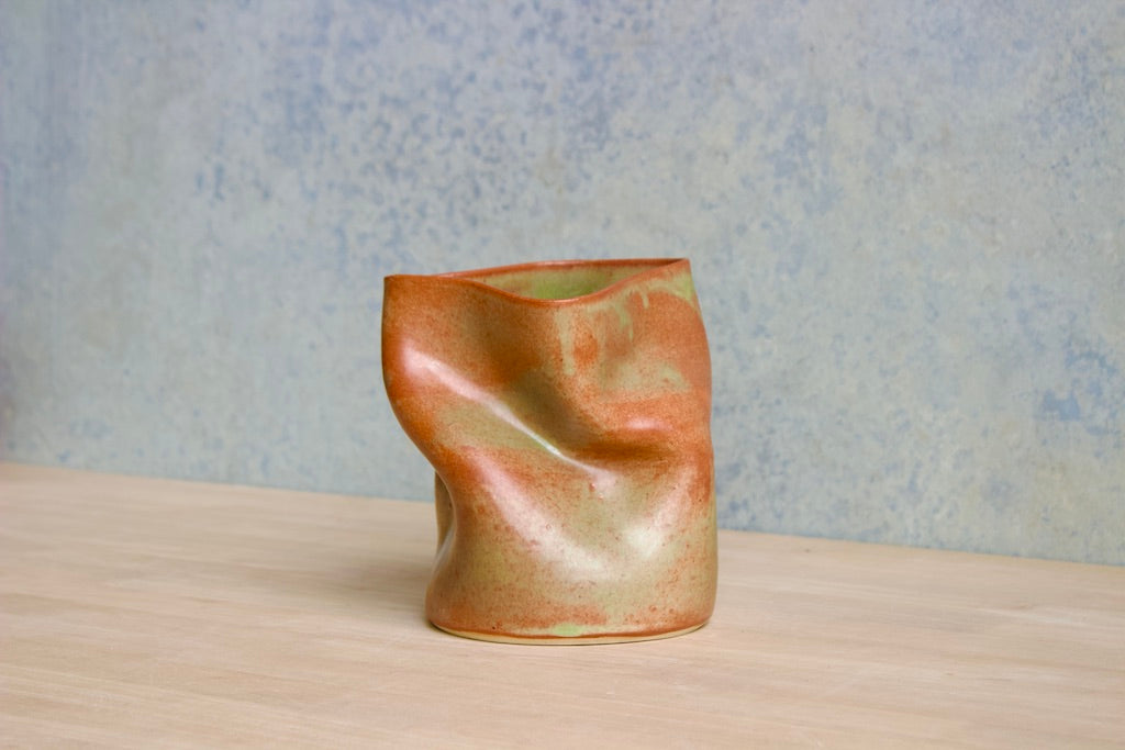 Wheel thrown and hand crumpled, each vase is a unique testament to the artist's touch, its form shaped by the caress of hands. No two are alike, each bearing a distinct story told through its creases and folds.
